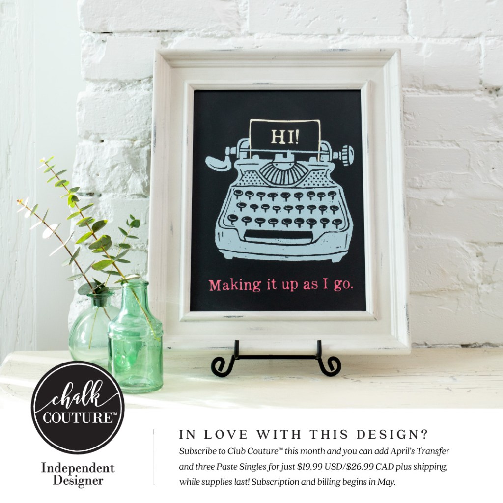 I love this month’s Club Couture transfer. I love vintage stuff, but I love how flexible the message can be. Of course, it comes with sentiments, but imagine combining it with other transfers or even just using our Chalk Couture chalk markers to write in your own message.